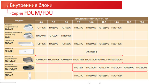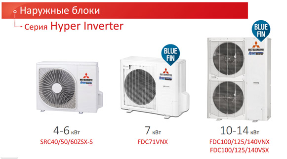 Для подключения к передовым системам Hyper INVERTER существует большой модельный ряд внутренних блоков разной холодопроизводительности и разного типа установки (в т.ч. скрытого):
