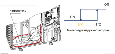*Обычно при активном использовании в режиме обогрева наружный блок работает как испаритель: на нем образуется конденсат, который при низких температурах замерзает. Чтобы справиться с этой проблемой в моделях Hyper INVERTER и внедрена опция CW-H-E. Подключается она на плату наружного блока и активируется при трех условиях: